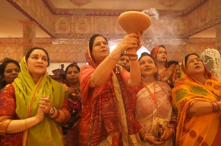 उत्सव के दुर्गा पूजा पंडाल में सन्धि पूजा का आयोजन