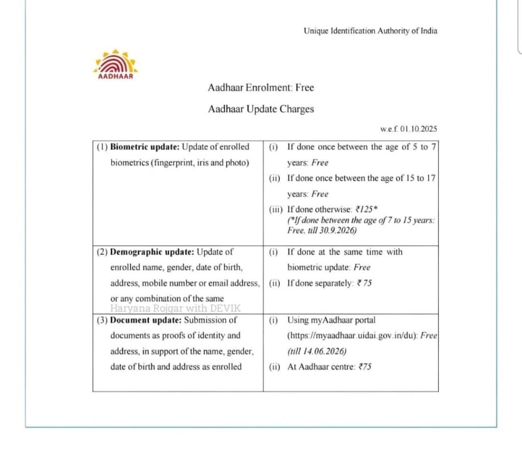 इसके अलावा 7 से 15 साल के बच्चों के लिए 2026 तक बायोमेट्रिक अपडेट का चार्ज नहीं लगेगा।